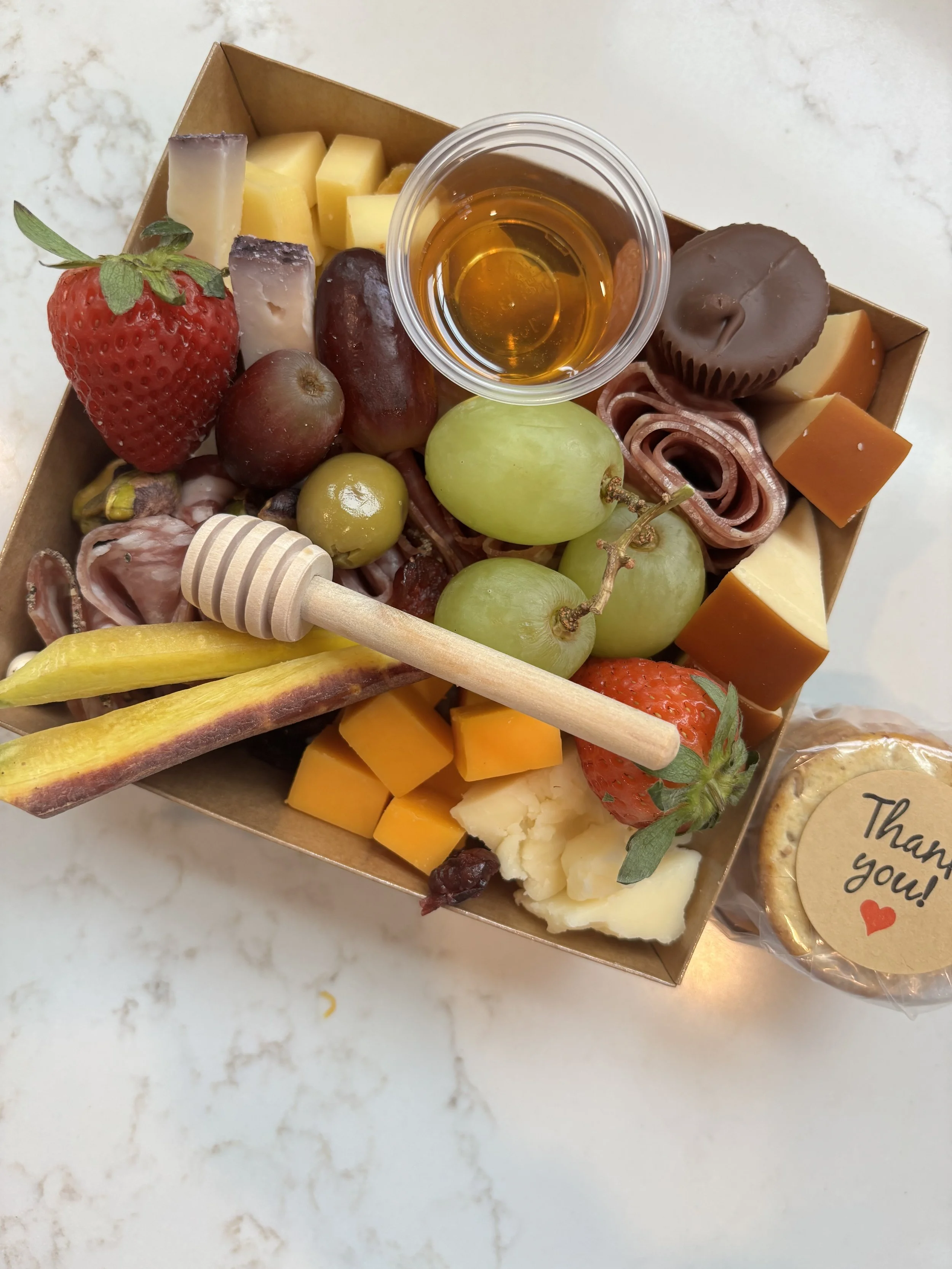 Small Boxes (6 minimum) $12.00 Charcuterie Cups (12 minimum) $10.00 Small Board 10” $60.00 Medium Board 14” $100.00 Large Board 17"x12” $150.00 XL Board 22”x12” $175.00